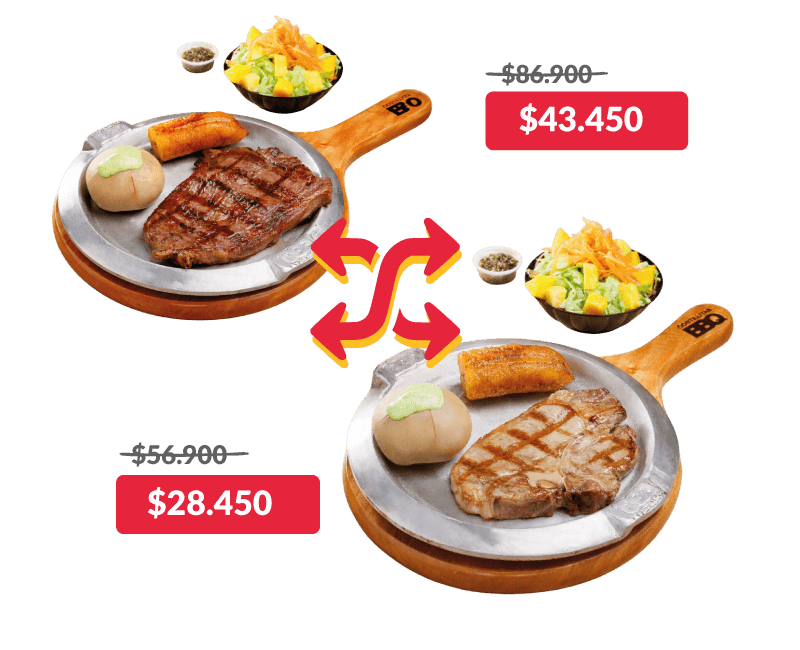 Además de nuestro reconocido 2×1, ahora puedes combinar dos cortes diferentes y pagar solo la mitad del precio de cada plato, si y solo si los compras juntos.